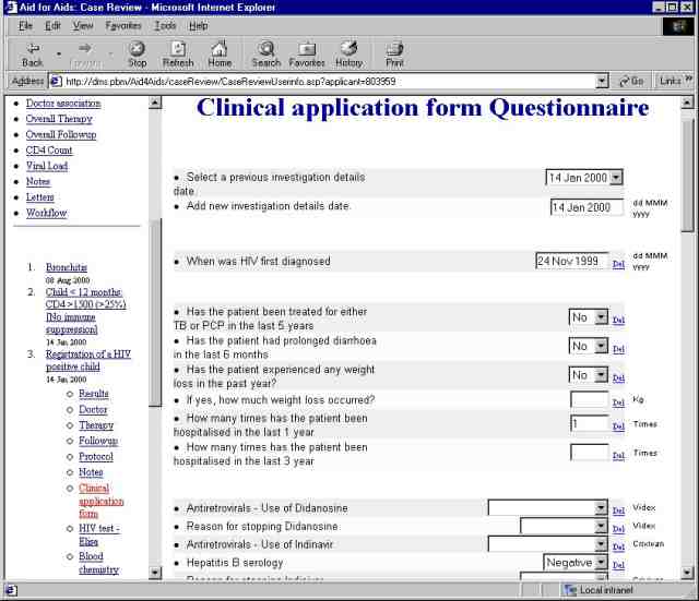 management of HIV positive patients. Clinical protocols are built into the system, allowing