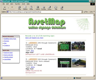 database of signage information from any Internet enabled device. A photographic record will