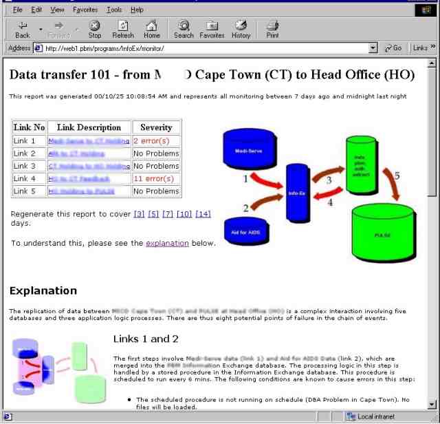 web page, which is generated in real time, which shows the status of the various sections.